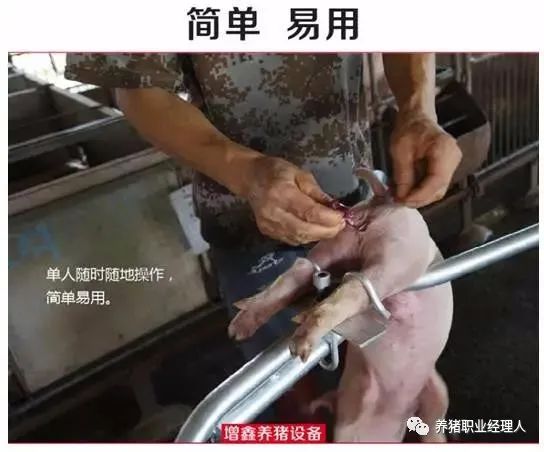 “阉猪神器”,顾名思义,就是用来阉猪的一种辅助工具。阉割,也叫去势;众所周知,阉割后的猪,由于失去了生殖机能,性情变得温驯,便于管理、肥育同时提高了胴体的质量,还可以防止劣种家畜自由交配,对改良家畜品种起到积极作用。但传统的人为保定阉猪的方法不仅不方便,而且阉割时仔猪挣扎极易误伤人和猪。特别是四周批生产的猪场短期内量大而且集中,有没有一种好的工具能节省人工且提高阉割效率呢?网上搜索笔者终于找到一款好的阉割工具,现介绍给大家。