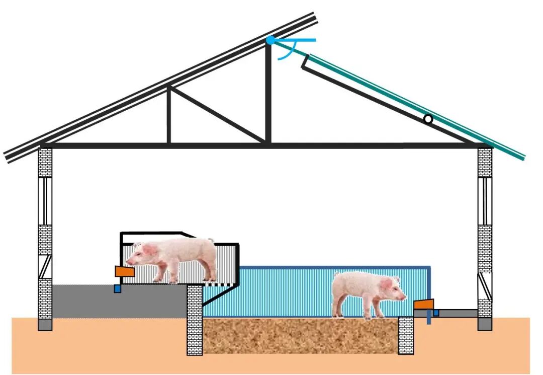 在关于自然法养猪的模式,对于育肥猪舍没有任何问题。只是在夏季发酵的过程会产生一定的热量,需要对猪舍进行降温措施。而如今我们把这样的生态养猪模式运用在分娩猪舍上,而由于这发酵床的因素,会导致母猪把小猪在压死或压坏的事情发生。为此对于规模化的分娩猪舍进行优化的设计,自然养猪法模式继续保留,而产床进行优化升级的设计,并且适合工业化养猪模式,简单设计为单边悬空和双边悬空两种模式。