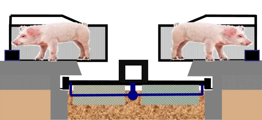 在单边悬空产床的设计中,对于产床上面排泄下来的排泄物而言,它是有发酵剂床上育肥猪或空杯猪的日常活动就可以把它进行混合。对于这样的混合方式也被称为自然式混合,也是在发酵床养猪的基本用途。而在双边悬空的设计而言,势必会把发酵床的上方空间进行压缩,导致基本不在适合在发酵床上养猪,而这样猪的排泄物不与发酵床上的菌类进行混合,就无法达到净化猪粪的目的。为了解决这个问题,在发酵床上进行设计了轨道型的翻刨设备,可以根据系统设计的翻刨时间,自动的进行猪的排泄与发酵床的菌类进行充分的混合,从而达到自然分解的目的,这样也就是达到工业化与自然养猪法的一个结合点。