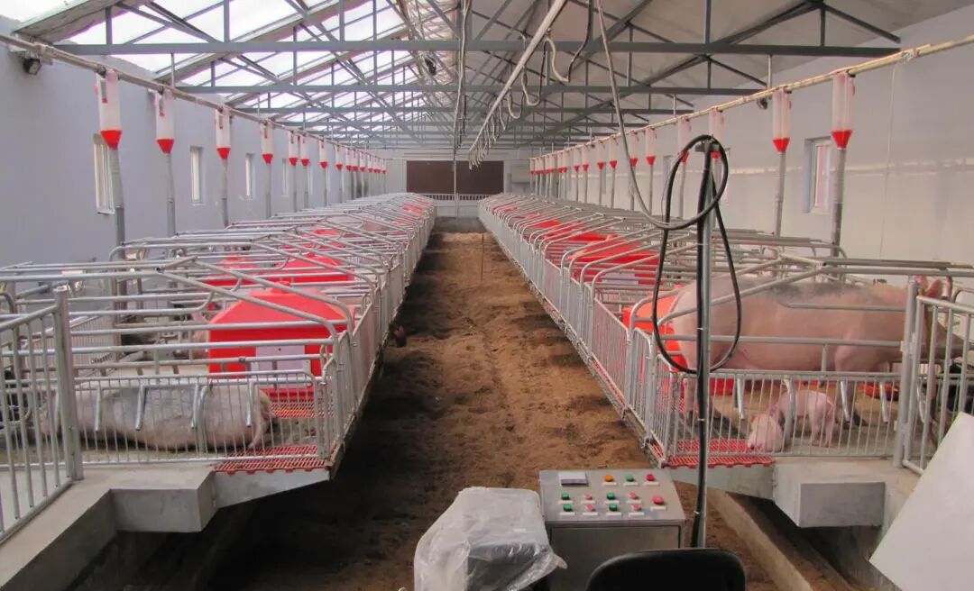 对于这样的实际上还是比较少见的,一般都是规模化的分娩猪舍。对于这个猪舍的建设情况也可以看出是相当的高端,内部的饲养设备都是自动化的。对于单边悬空产床模式的猪舍,基本可以在这个实际的图片中可以看出,产床上是要进行分娩的母猪,而下面的发酵床上是一些育肥猪或空杯的母猪等,这样的猪舍基本是达到了双面的应用,可以说是依据两得的情况。主要的猪舍主要是针对的自己生产猪仔和进行育肥的猪场而建设的,而对于专门从事小猪在销售的情况,采用的基本是双边悬空产床的模式。