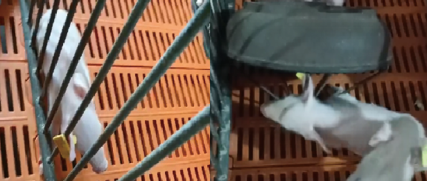 图1仔猪佩戴电子耳标后出现挂栏现象