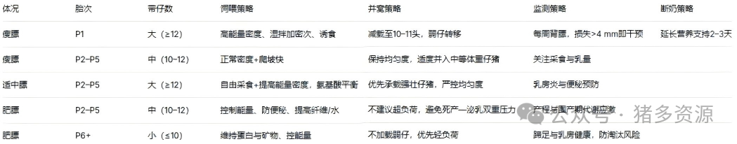 一、母猪体况-胎次-带仔数分级矩阵与建议策略