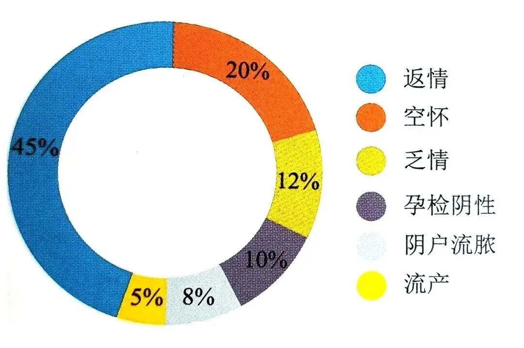配怀舍母猪繁殖问题包括:乏情(不发情)、返情、流产、空怀、妊娠检查阴性、阴户流脓等情况。出现任意种情况都会增加母猪的非生产天数,降低母猪的年产胎数。在日常生产管理中,返情、空怀及乏情是发生比例最高的繁殖问题。