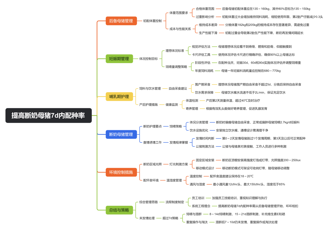 在实际生产中,母猪断奶后长期不发情是母猪非生产天数增加的主要原因。本文汇总养猪生产管理中的关键措施,为提高断奶母猪7d内配种率提供一些思路。