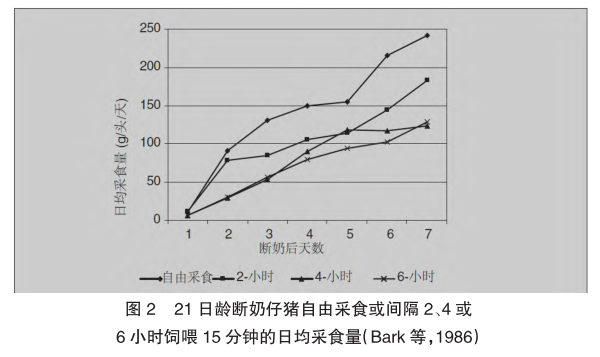 通过适当的加工技术也有助于改善适口性,提高断奶仔猪的采食量。比如发酵、酶解、发酵酶解组合应用等手段也有较好的效果,但是这方面的技术还需要进一步研究和推广完善。饲喂技术也是提升断奶仔猪采食量的关键。饲喂技术包含两个层面,一个是饲料形态的选择,一个现场用料的方式。从料型上看,在断奶时,粉料的诱食和抗腹泻效果优于粉加粒,颗粒料最差。从用料方式看,改变用料套餐,增加优质乳猪料的用量非常有助于减少保育料换仔猪料时的换料应激和腹泻风险。