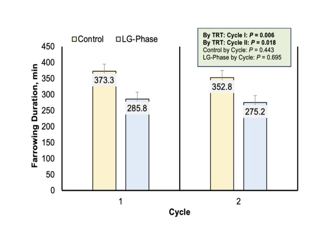 此前接受强化饲喂的母猪,其分娩时长依然短于对照组(图2)。