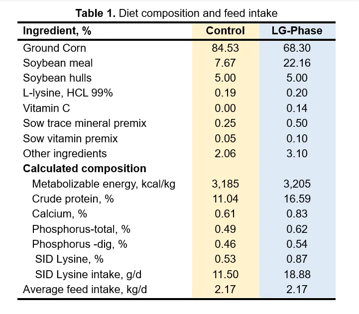 为探究解决方案,SDSU团队设计了一项试验,专门评估在妊娠最后40天(约第70-110天)主动提升营养供应所产生的效果(McClellan等人,2025;全文链接:10.1093/tas/txaf155)。通过针对性提高氨基酸、微量矿物质、钙、磷及维生素的供给,使日粮更精准地契合母猪此阶段的生物学需求。