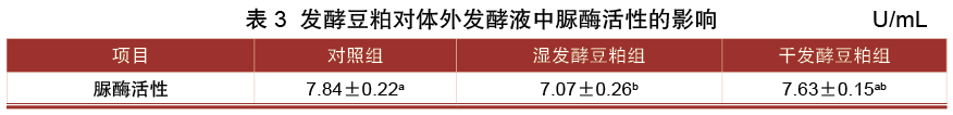 由表3可见,湿发酵豆粕组的显著低于对照组的(P<0.05),干发酵豆粕组的介于两者之间,但差异不显著(P>0.05)。由于丁酸的产生受脲酶的抑制,在仔猪大肠内容物24 h体外发酵液中,发酵豆粕组的丁酸浓度更高(表1)。