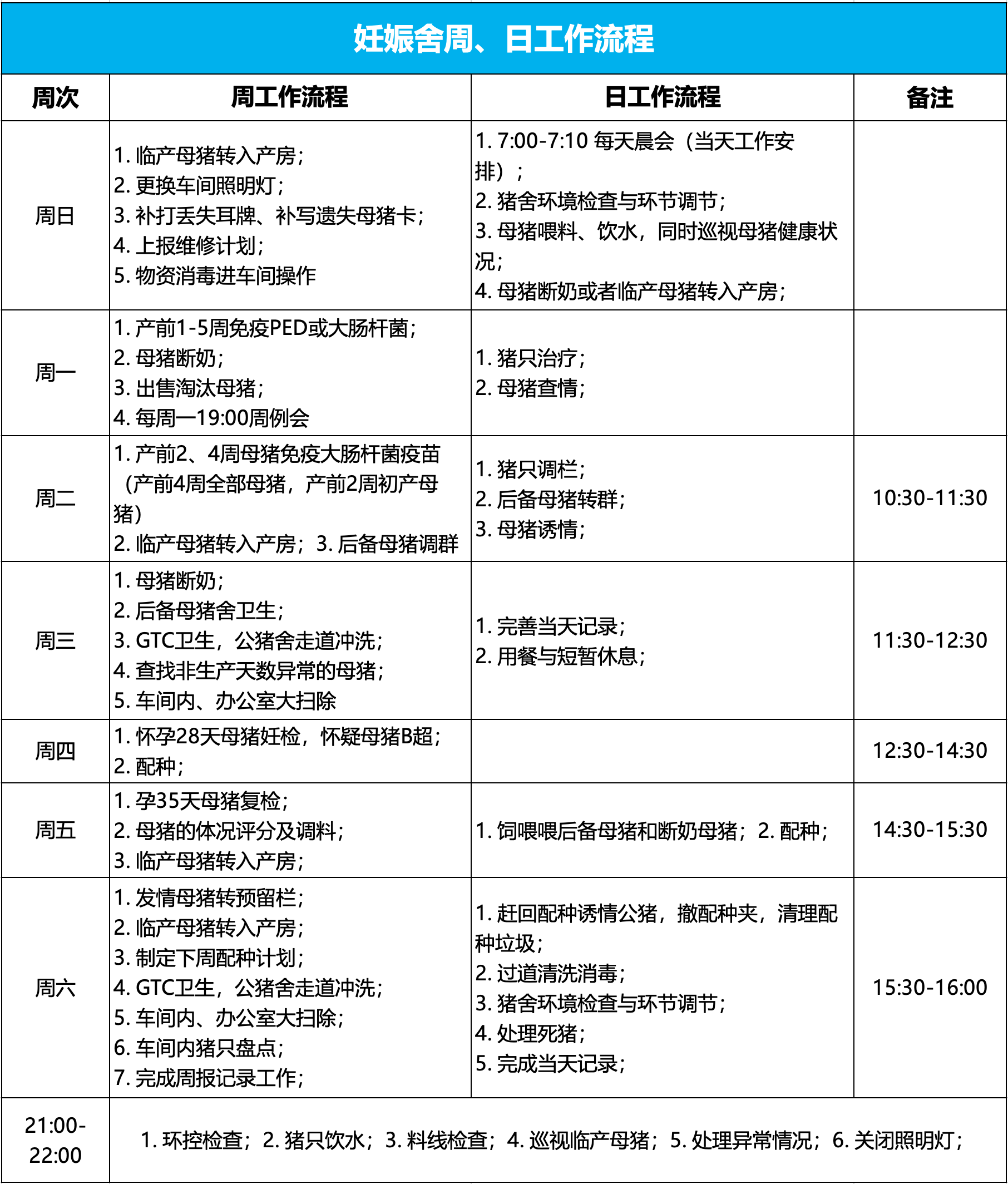 妊娠舍生产流程图