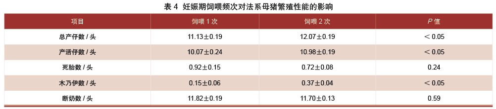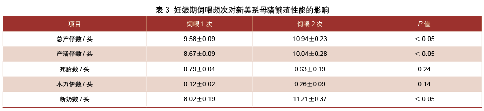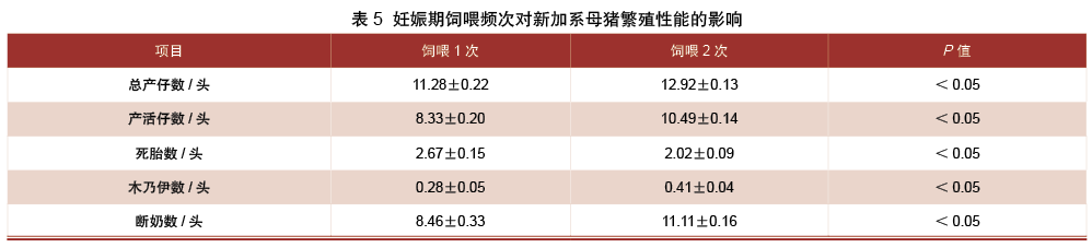 2.5妊娠期饲喂频次对新加系母猪繁殖性能的影响