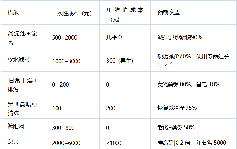 -水箱每天排出底部20–30%旧水(可加自动排污阀,成本<200元)。